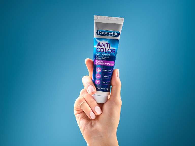 – Plamy nazębne powstają na skutek kontaktu z barwiącymi substancjami, m.in. dymem tytoniowym, kawą, herbatą (szczególnie z czystka i pokrzywy). Aby pigmenty nie osadzały się na powierzchni zębów, warto po spożyciu pokarmu lub wypiciu napoju jak najszybciej zadbać o podstawową higienę jamy ustnej, choć w przypadku cytrusów zaleca się mycie zębów dopiero po 30 minutach. Istnieją także dedykowane produkty, które pomagają zapobiegać tworzeniu się przebarwień – mówi Anna Drobkiewicz. W drogeriach Rossmann dostępna jest pasta Rapid White Anti Color, która dzięki wykorzystaniu powłoki ochronnej pokrywającej powierzchnię zębów minimalizuje powstawanie plam nazębnych.