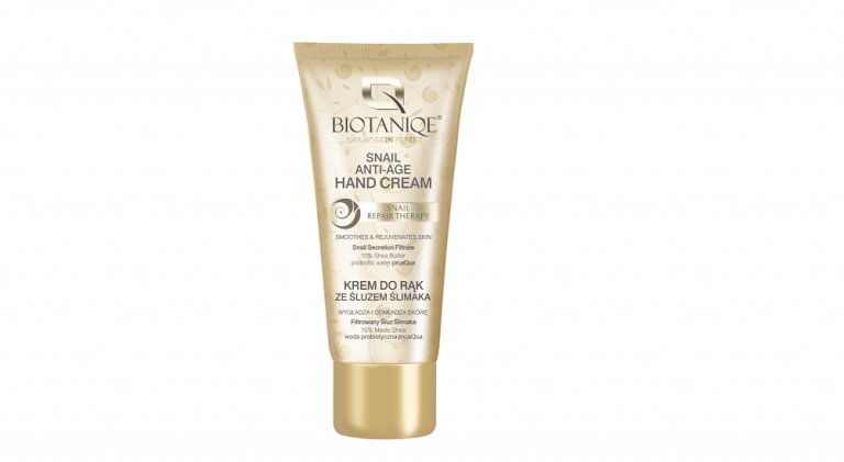 Biorąc pod uwagę ogromny sukces wspomnianej linii i wychodząc naprzeciw oczekiwaniom Klientek, Biotaniqe opracowało kolejny produkt ze śluzem ślimaka. Jest to kosmetyk przeznaczony do pielęgnacji skóry rąk. Bo dłonie zdradzają nasz wiek… Dlatego warto o nie zadbać i zadziałać intensywnie przeciwstarzeniowo!