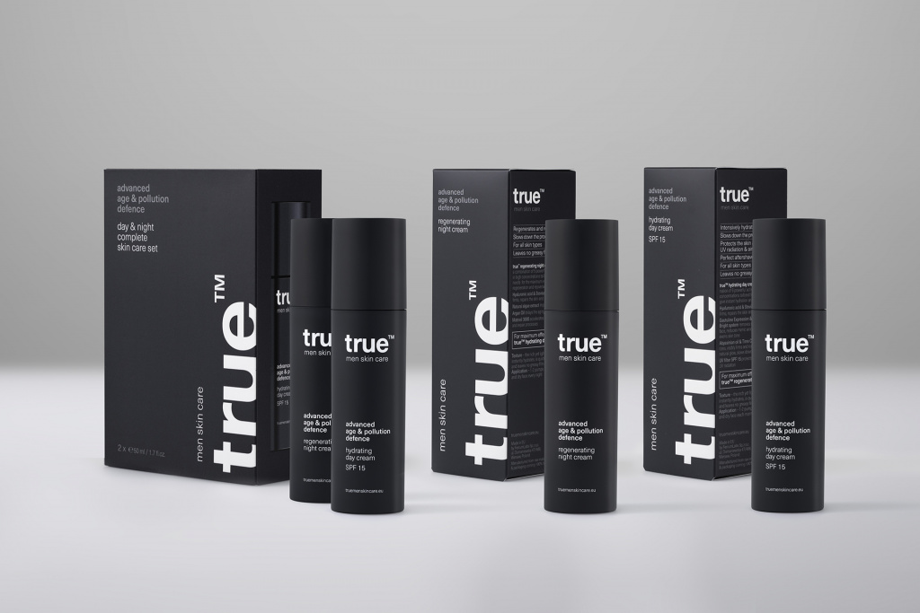True™ men skin care to pierwsza polska wegańska marka dla mężczyzn w segmencie premium. Pierwsza linia wypuszczona na rynek z początkiem 2021 roku – Advanced Age & Pollution Defence – to produkty zapewniające zaawansowaną ochronę przed starzeniem się skóry i negatywnym wpływem zanieczyszczeń środowiska. Zapewniają one prosty rytuał pielęgnacyjny, zgodny z potrzebami współczesnego, dbającego o siebie mężczyzny. Kosmetyki True™ men skin care są w 100 proc. wegańskie, produkowane w Polsce, a wszystkie surowce i opakowania pochodzą w 100% z UE. Są też wolne od: olejów mineralnych, parabenów, oleju parafinowego, siarczanów, SLS, SLES, DEA i alkoholu.