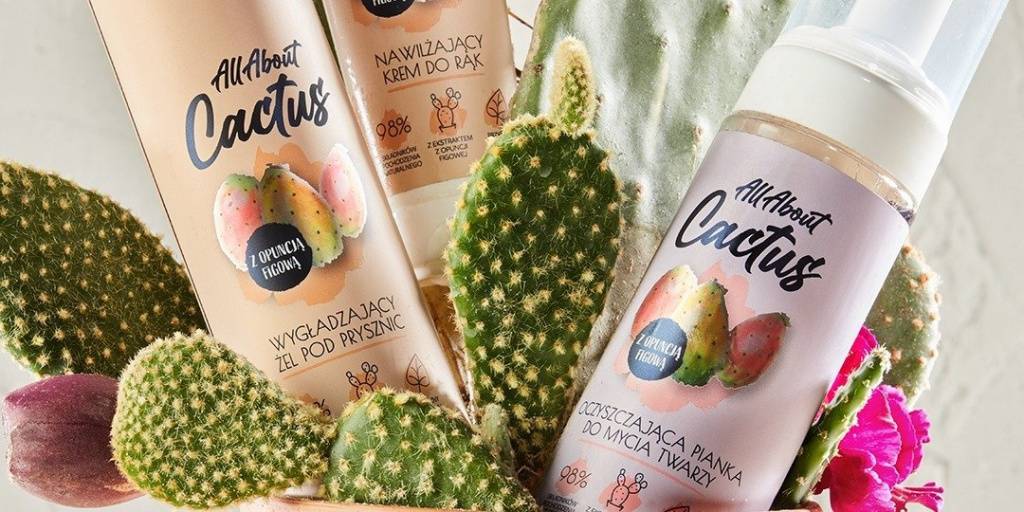 All About Cactus to seria wegańskich kosmetyków do twarzy i ciała skomponowanych z min. 95 proc. składników pochodzenia naturalnego. Marka bazuje na dwóch składnikach przewodnich: ekstrakcie z opuncji figowej oraz oleju z opuncji figowej, zaliczanego do jednych z najdroższych na świecie. Oba produkty kosmetyczne słyną ze swoich właściwości przeciwstarzeniowych przeciwzapalnych, nawilżających i wygładzających. Produkty All About Cactus są dodatkowo wzbogacone m.in. o naturalne oleje z awokado, słodkich migdałów, winogron czy jojoba, a także o sok z aloesu czy masło shea. W efekcie tworzą one kojącą, skoncentrowaną esencję młodości, która nawilża, wygładza oraz ujędrnia skórę twarzy i ciała, chroniąc ją jednocześnie przed przedwczesnym starzeniem.