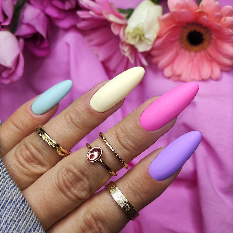 W nowej pastelowej kolekcji znajdują się cztery najmodniejsze w sezonie wiosna/lato 2021 odcienie: słoneczny żółty (229), miętowy (230), lawendowy (231) oraz sorbetowy malinowy (232). Dzięki nim wiosenne i letnie stylizacje będą się mienić się kolorami tęczy w wydaniu pastelowym.