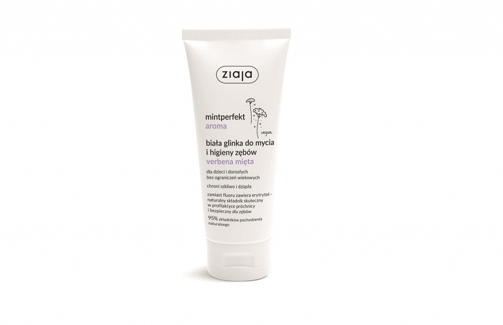 Mintperfekt aroma – nowoczesna higiena jamy ustnej oparta na mineralnych składnikach: krzemionkach, węglanie wapnia, białej glince i perlicie. Łagodnie oczyszcza zęby bez ryzyka ścierania szkliwa. Posiada ziołowe aromaty zawierające naturalne olejki mięty, limonki, werbeny, eukaliptusa, zielonej herbaty. Bez glutenu, odpowiednia dla vegan.