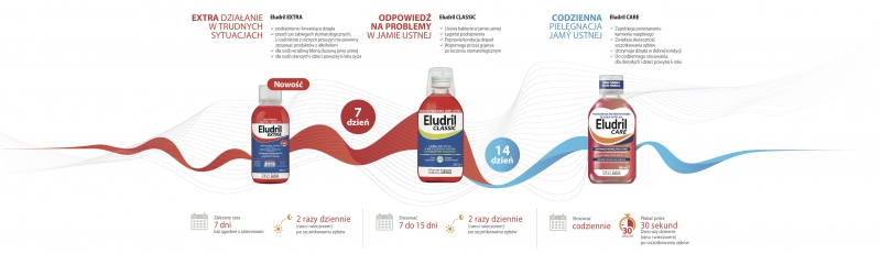 Do codziennego stosowania przeznaczony jest natomiast Eludril Care. To produkt, który uzupełni skuteczność szczotkowania, docierając do miejsc, do których ciężko dotrzeć podczas szczotkowania. Mogą go stosować osoby borykające się z problemem nadmiernie odkładającej się płytki nazębnej oraz ze skłonnościami do problemów z dziąsłami. Produkt dedykowany jest osobom pragnącym zadbać o zdrowie swoich dziąseł.