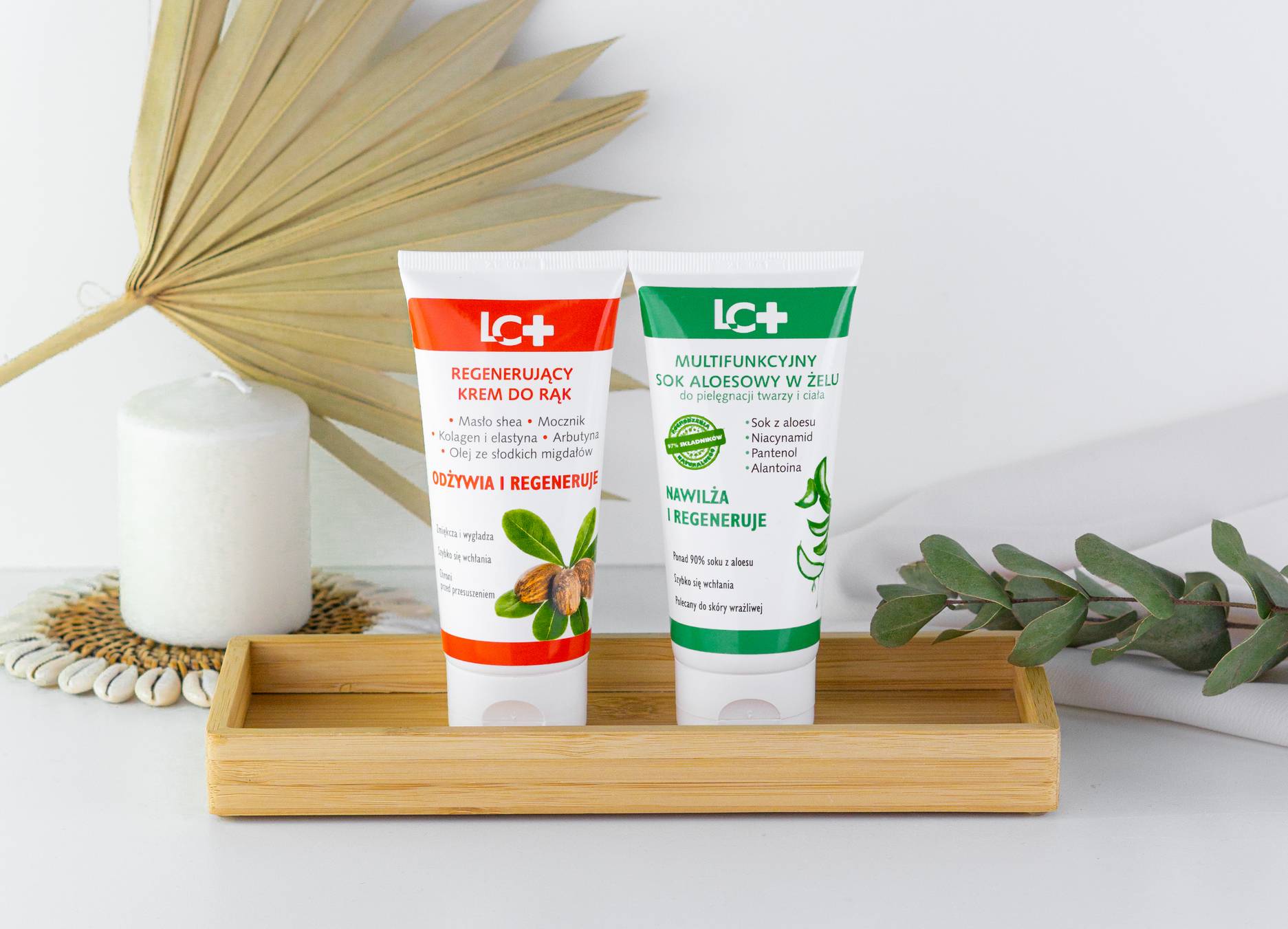 Regeneracja powinna być tym intensywniejsza, im więcej korzystaliśmy z uroków lata. Opalanie nadaje ciału piękny koloryt, ale przyjdzie nam za niego zapłacić. W trakcie kąpieli słonecznych został naruszony płaszcz hydrolipidowy skóry chroniący przed odwodnieniem. Dlatego jesienią często odczuwamy suchość skóry i włosów, która wzmaga się zimą. Różnica temperatur i wysuszające powietrze kaloryfery pogłębiają problem. Aby pomóc skórze się zregenerować, dobrze jest sięgnąć po regenerujące i intensywnie nawilżające kosmetyki. Z myślą o jesiennej pielęgnacji marka LC+ stworzyła regenerujący krem do rąk z olejem ze słodkich migdałów oraz multifunkcyjny żel z aloesem.