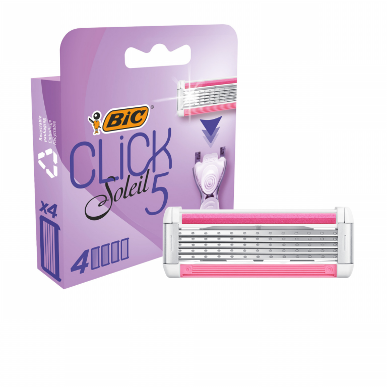 Click 5 Soleil to zupełnie nowy model popularnych maszynek Click 3 Soleil i Click 3 Soleil Sensitive, wyposażonych w 3 ostrza. Nowa maszynka Click Soleil 5 Soleil posiada aż 5 ostrzy do jeszcze gładszego golenia   i bardziej efektywnej depilacji. Dzieje się tak, gdyż ostrza – poza usuwaniem włosków – mają za zadanie także unosić je nad powierzchnią skóry. Po to, aby każde kolejne ścinało te części, które nie zdążyły jeszcze opaść. Ponieważ ostrza są osadzone bardzo blisko siebie oraz 2000 razy cieńsze niż włos, chronią skórę przed zacięciami i podrażnieniami.