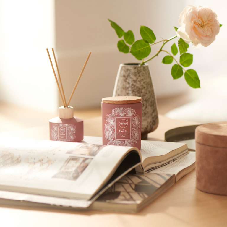Marka Aroma Home wraz z Dorotą Szelągowską stworzyła dwie kompozycje oparte na tych eleganckich, szlachetnych kwiatach. Pierwsza, Róża, jest delikatna, lekka i świeża. Druga, Czarna róża z paczulą – ciepła, ciężka i orientalna. Świece zapachowe, patyczki oraz celulozowe zawieszki sprawiają, że w całym domu unoszą się uwodzicielskie nuty róż, a opakowania stanowią piękną ozdobę wnętrza i cieszą oko domowników oraz gości.