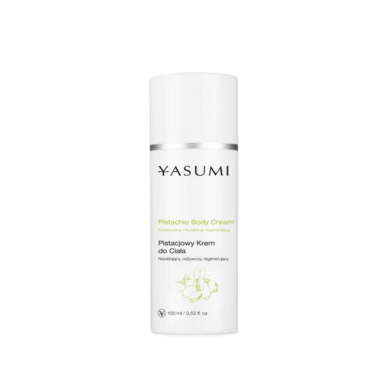 YASUMI Pistachio Body Cream – krem do każdego rodzaju skóry, również bardzo suchej, o subtelnym zapachu pistacji. Jego formuła, bogata w witaminy A, E, F, aminokwasy oraz β-sitosterol, znacząco poprawia kondycję skóry. Odżywia, nawilża, wzmacnia i rewitalizuje, co przekłada się na jej gładkość i jędrność.
